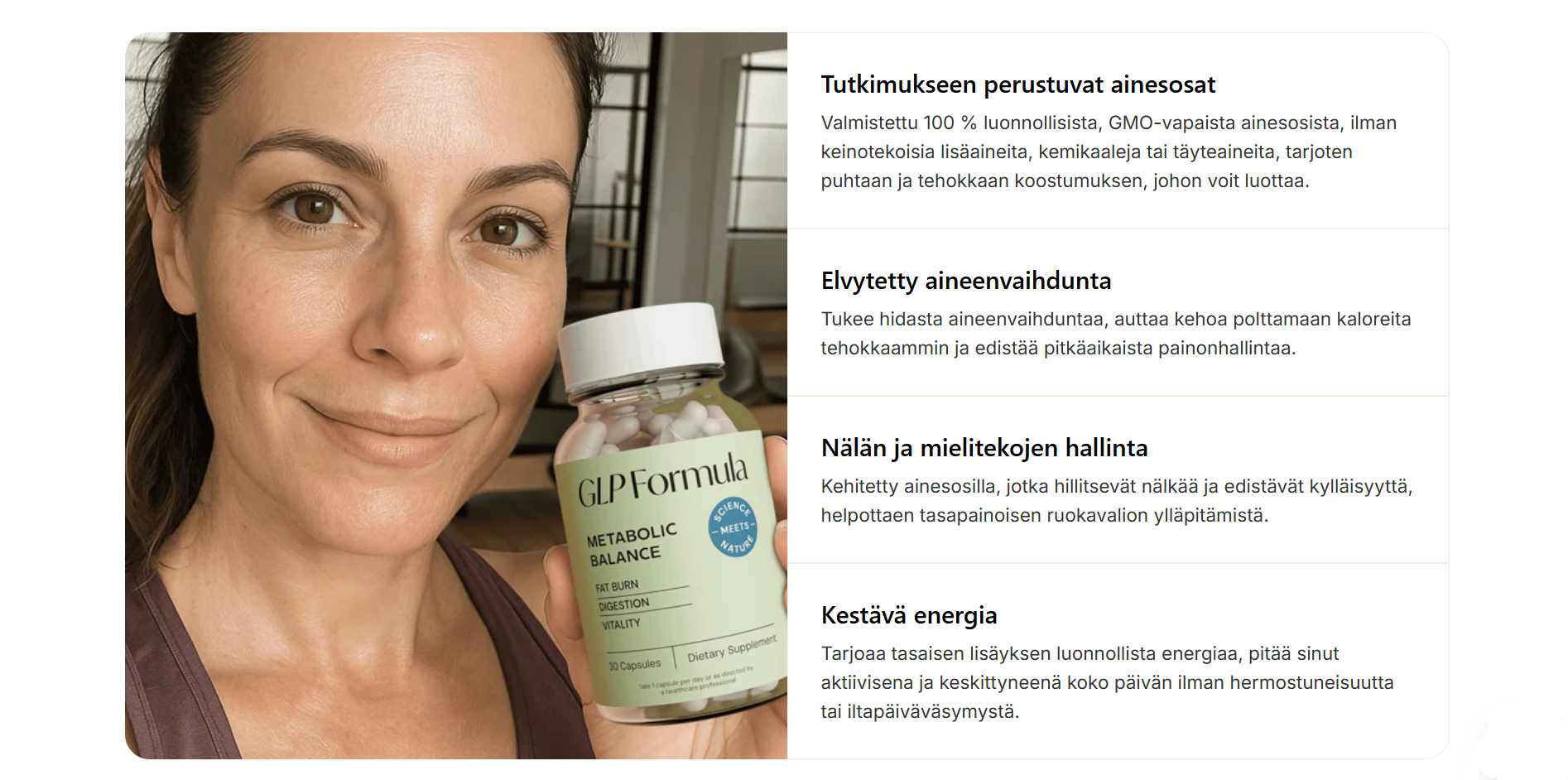 Glp Formula on kokonaisvaltainen ratkaisu kaikille, jotka etsivät laadukasta ja luotettavaa tuotetta hyvinvointiin. Sen suurimmat edut ovat selkeät: hinta vain 39,95 €, säästö 106,65 € (-47 %), ilmainen toimitus sekä 60 päivän tyytyväisyystakuu. Tuotteen tilaaminen viralliselta verkkosivustolta varmistaa aidon tuotteen ja parhaat ehdot. Glp Formula on turvallinen, riskitön ja edullinen valinta, joka vastaa vaativankin asiakkaan odotuksiin.
